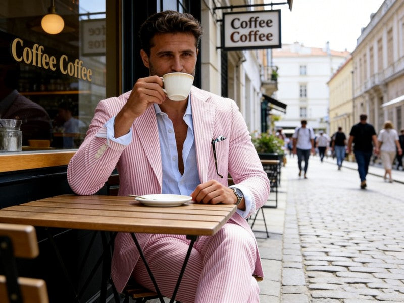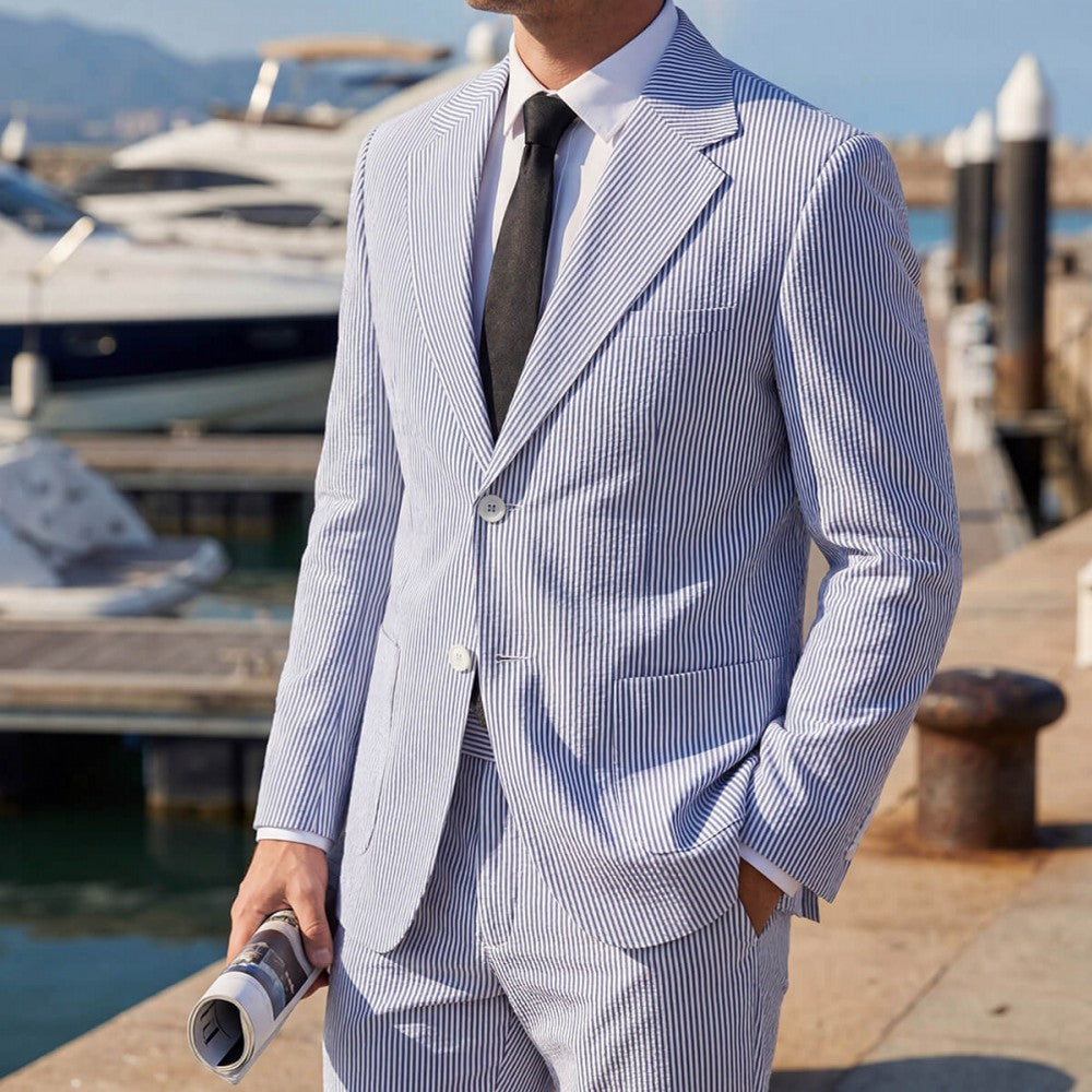 This seersucker striped suit exhibits excellent breathability and lightweight properties. Make it essential and ideal for casual summer wear.